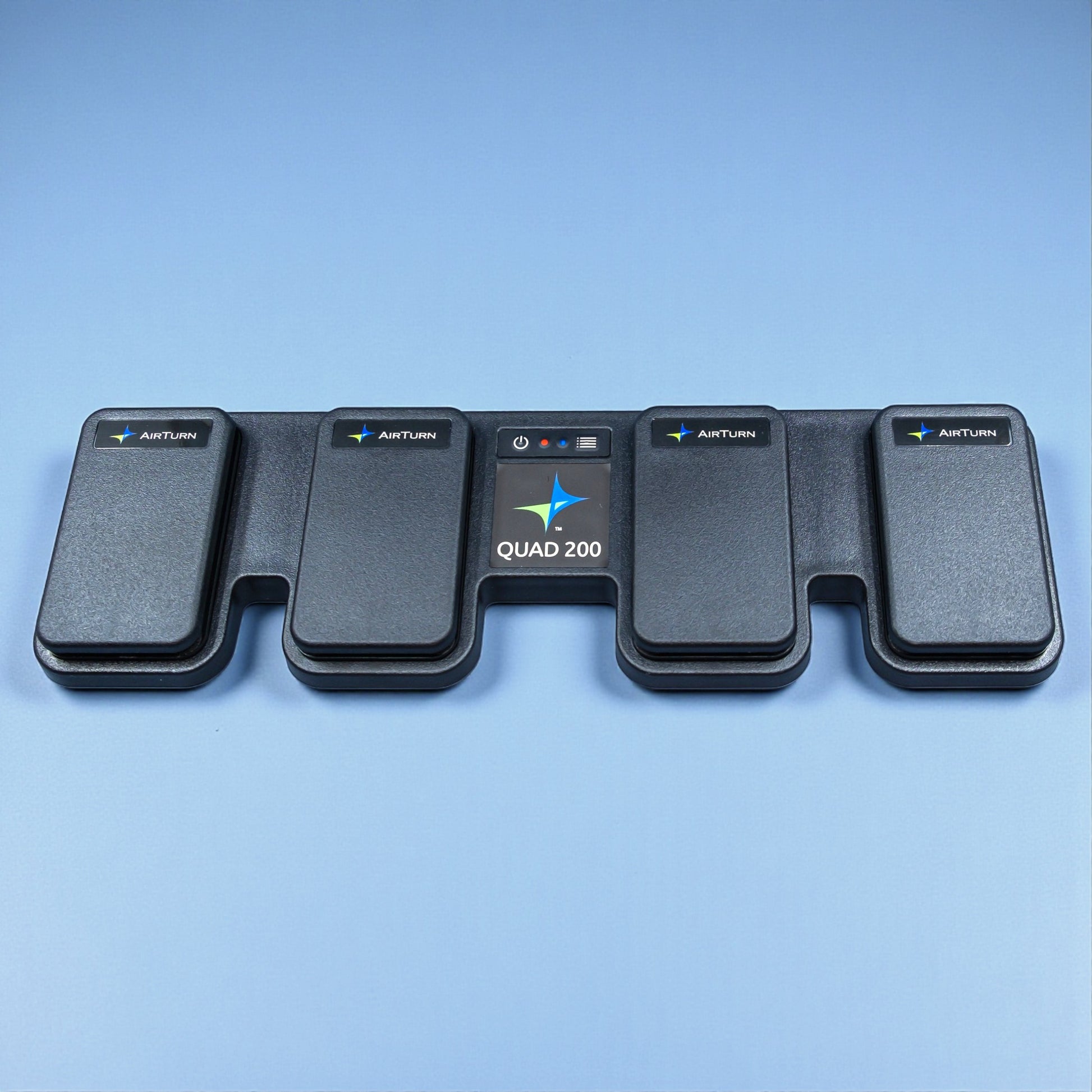 Who knew? Yes, you can use this AirTurn to flip score pages like the AirTurn Duo, but the Quad is especially useful in conjunction with electronic music software like Max, Ableton Live, even Logic, GarageBand, Reaper, and every VST or AudioUnit plugin — really anything that uses a footpedal trigger, the Quad will expand your performance setup wirelessly!