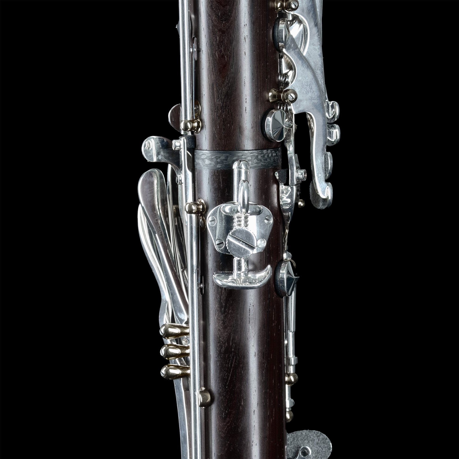 He worked with Anthony McGill from the New York Philharmonic on the playing profile, which is less resistant, and with a tighter "French" core to the sound. He worked with me on the ergonomics of the key work — I'm especially proud of the thumb rest, which was carried over from his bass clarinet line. I guarantee that it's the most comfortable thumb rest you've ever felt on a stock clarinet.
