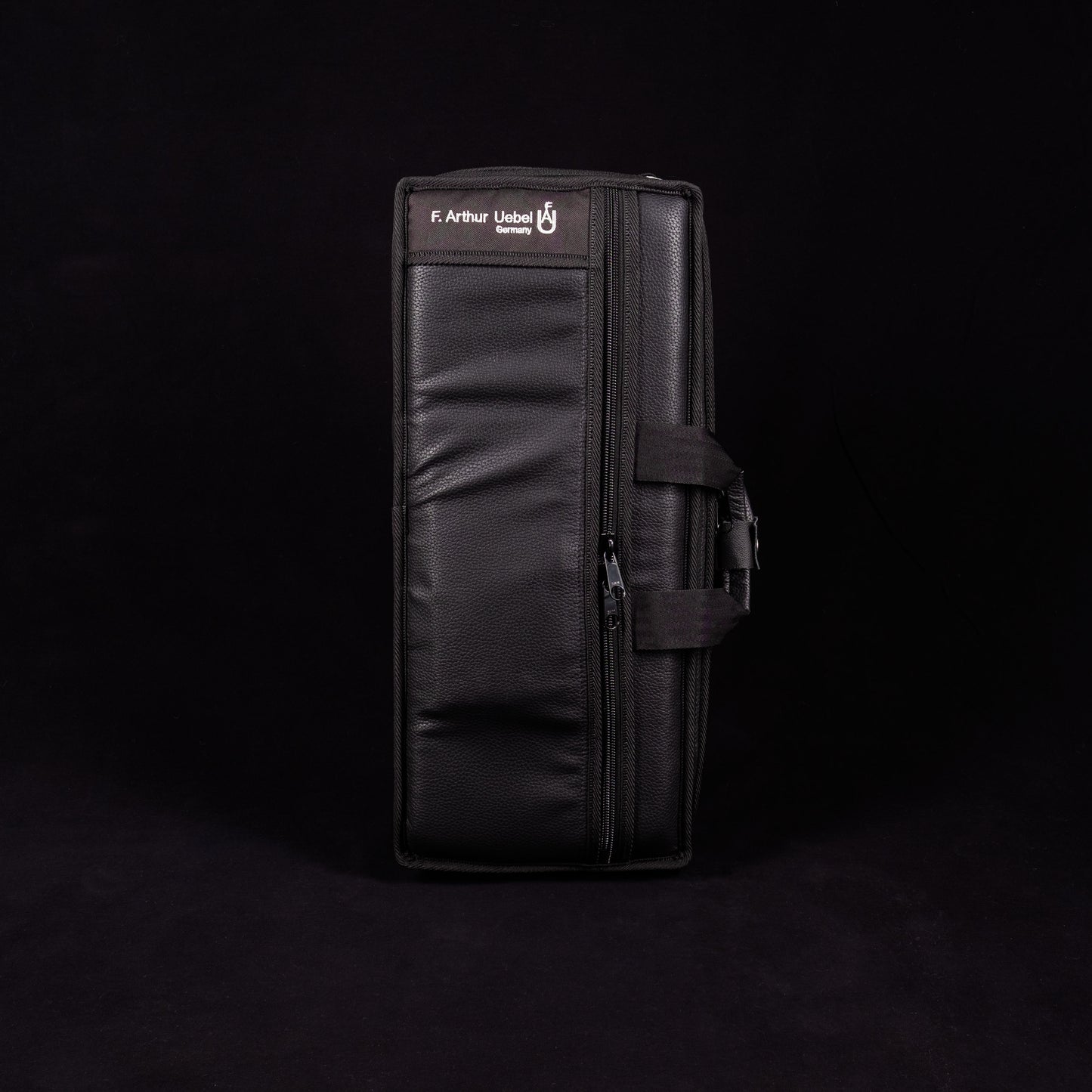 It comes with an Alto Clarinet mouthpiece — a Vandoren B40 — and a Rovner Ligature. (I guess that's something that the Alto Clarinet and the Basset Horn share!) The leather case is made by Mark O'Brien over at Reed + Squeak, and is designed very well for the instrument.