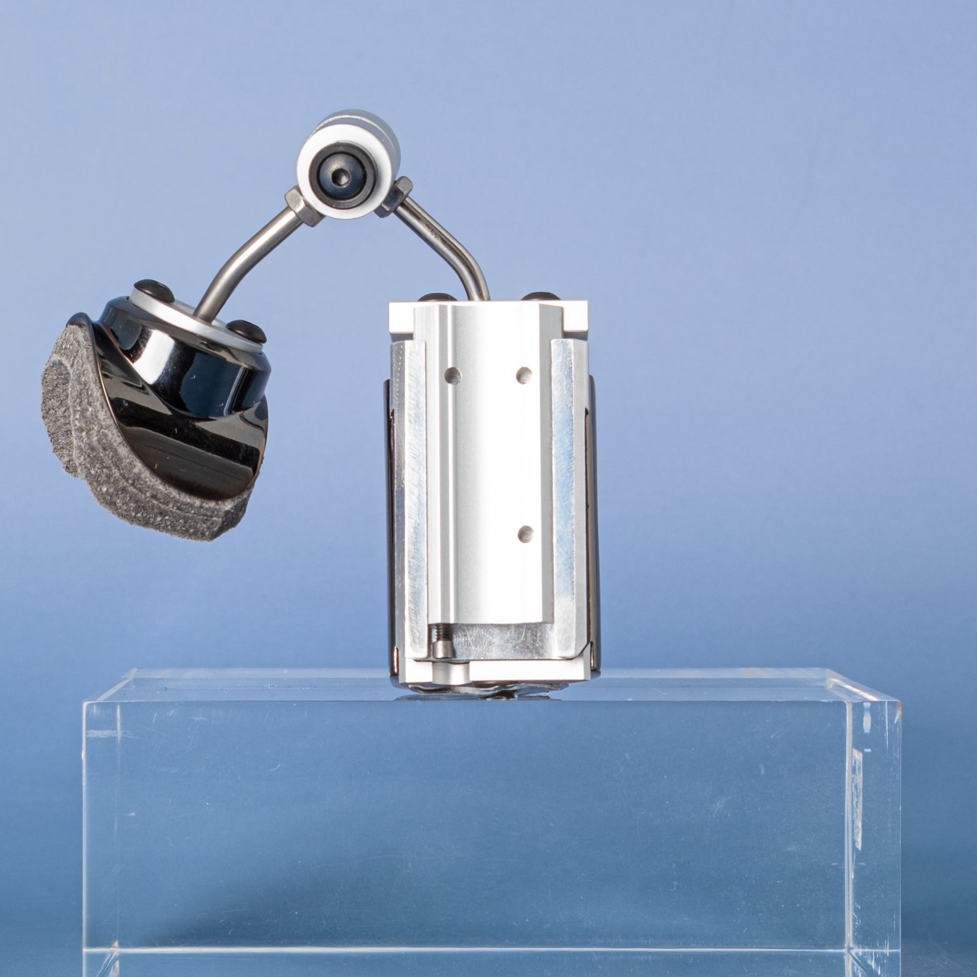 - Adjustable in every direction via ball joints and hinge — this thing bends to your thumb, not the other way around.